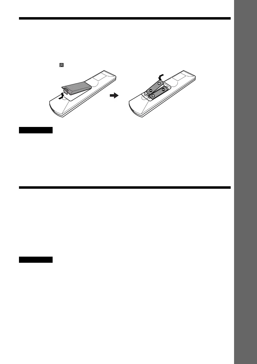 • Ne laissez rien tomber dans le boîtier de la télécommande, en particulier lorsque vous remplacez les piles.