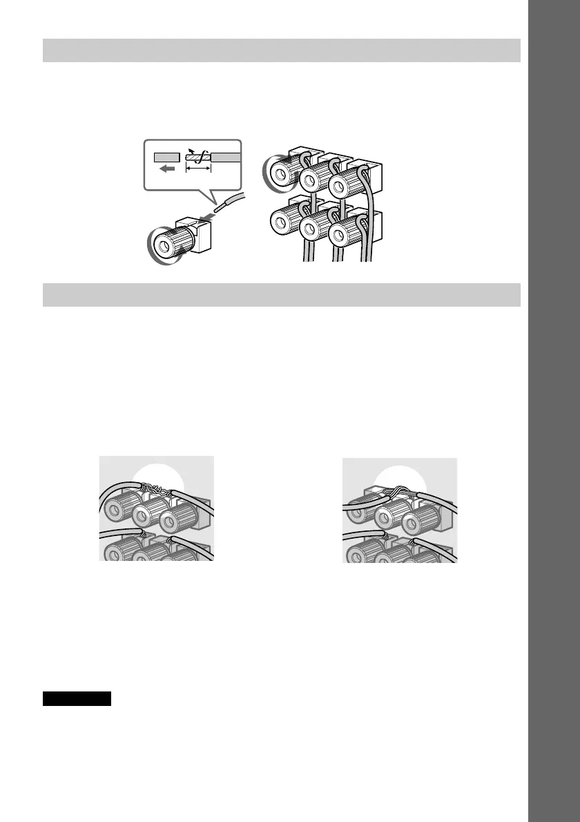 • Lors du raccordement des extrémités dénudées des cordons d’enceintes, évitez tout contact entre les extrémités