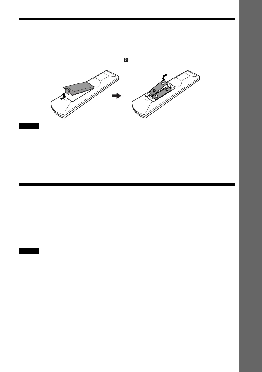 • If you do not use the remote for an extended period of time, remove the batteries to avoid possible damage from