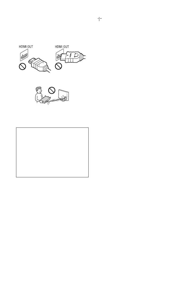 damage the HDMI OUT jack and the connector.