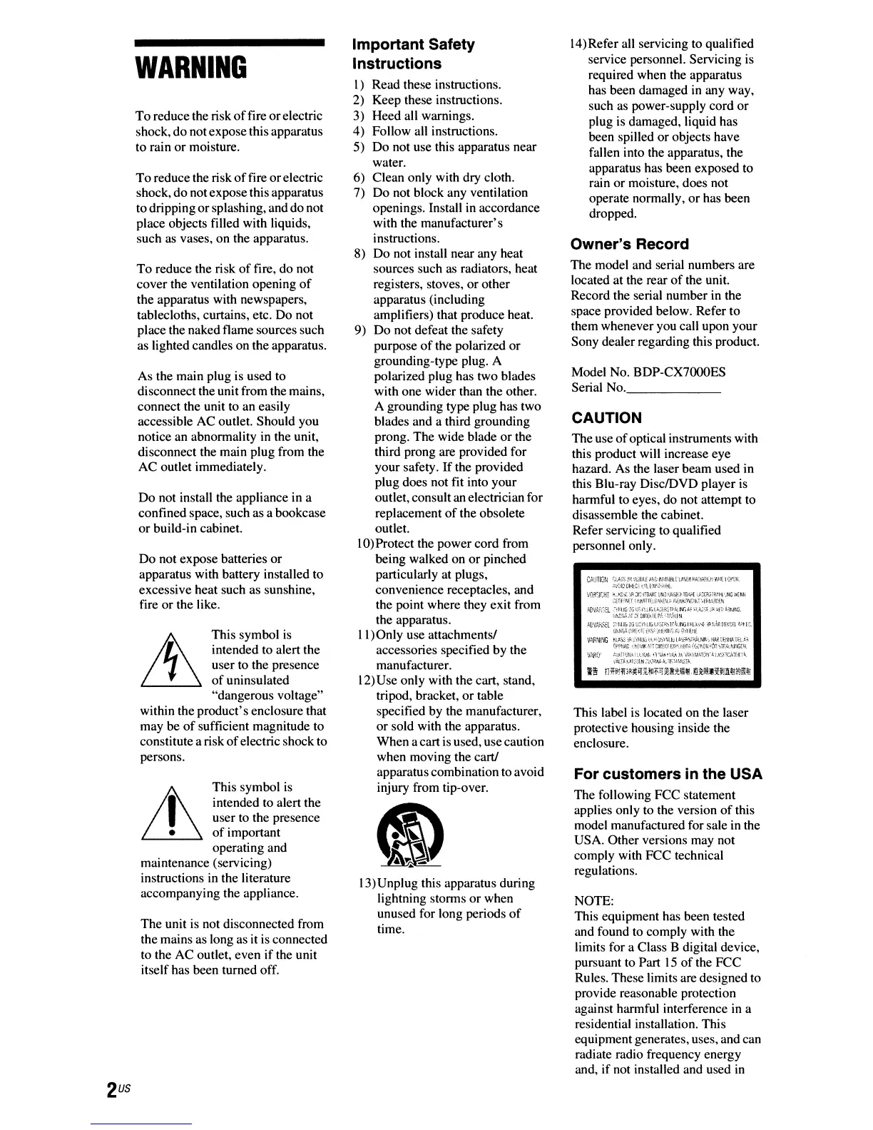 Model No. BDP-CX7000ES