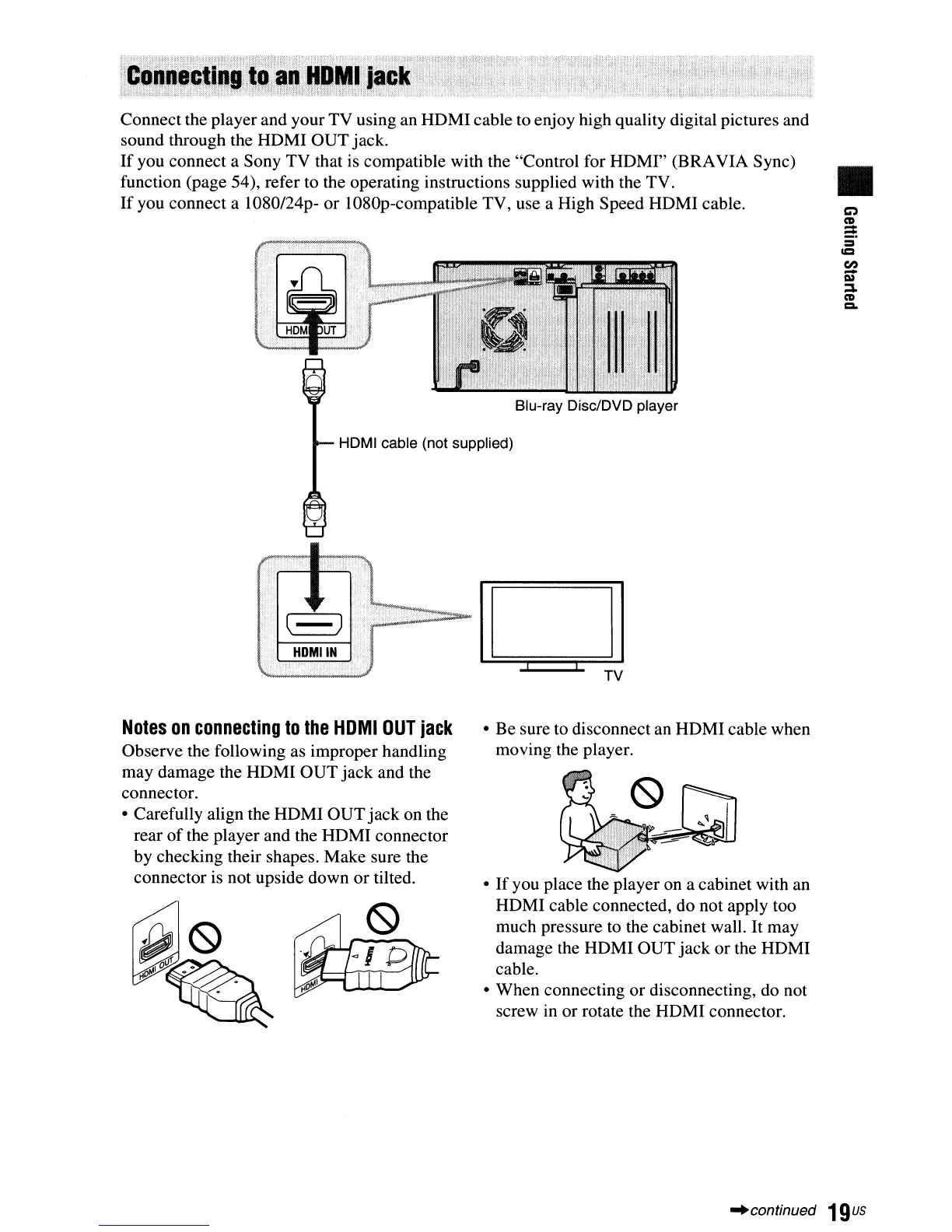 damage the HDMI OUT jack or the HDMI