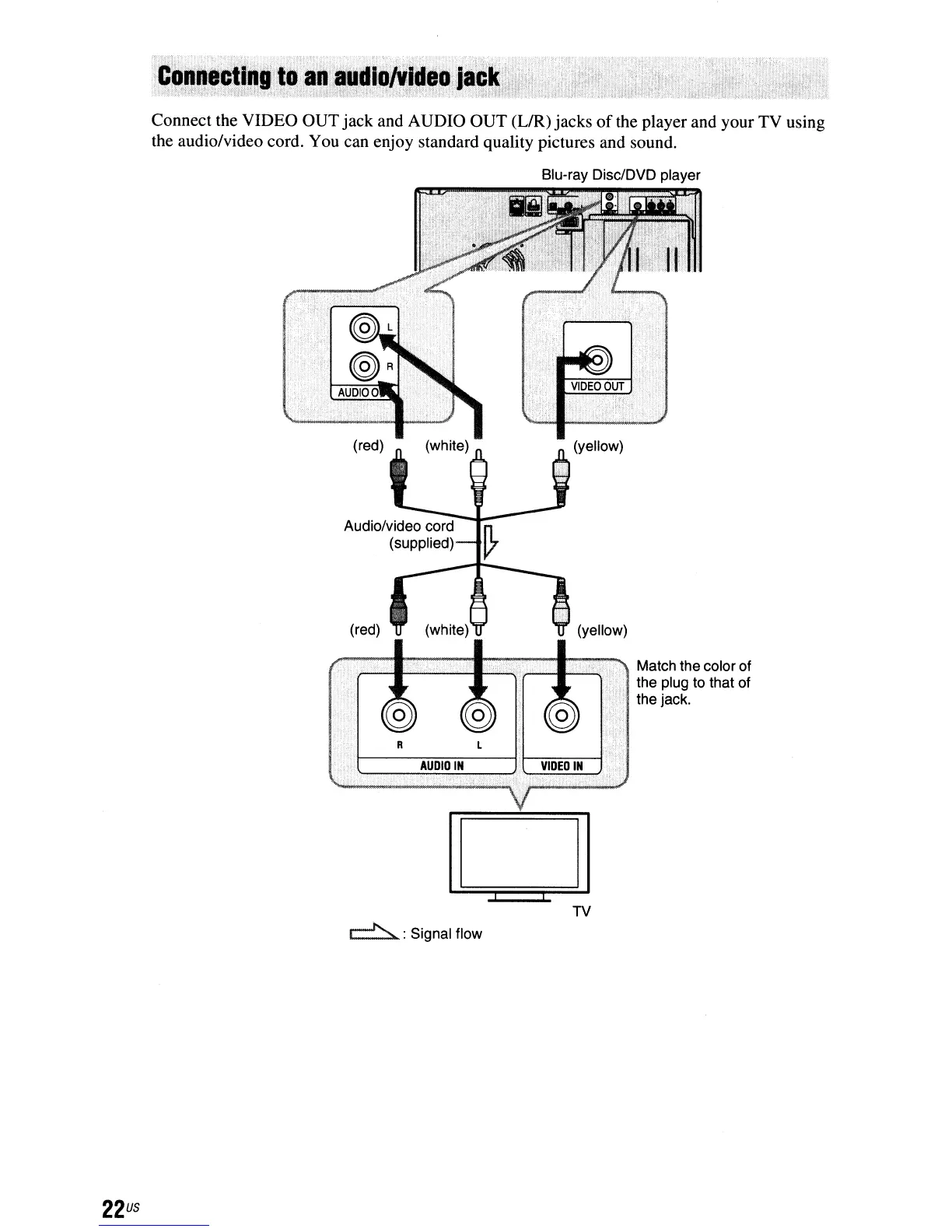 the audio/video cord. You can enjoy standard quality pictures and sound.