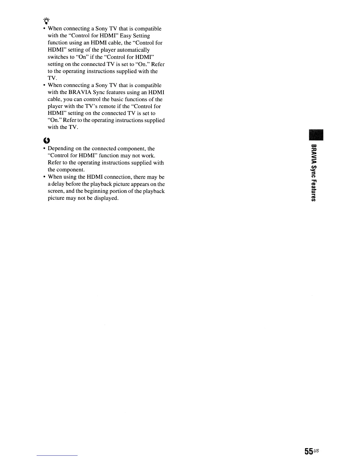 with the BRAVIA Sync features using an HOMI