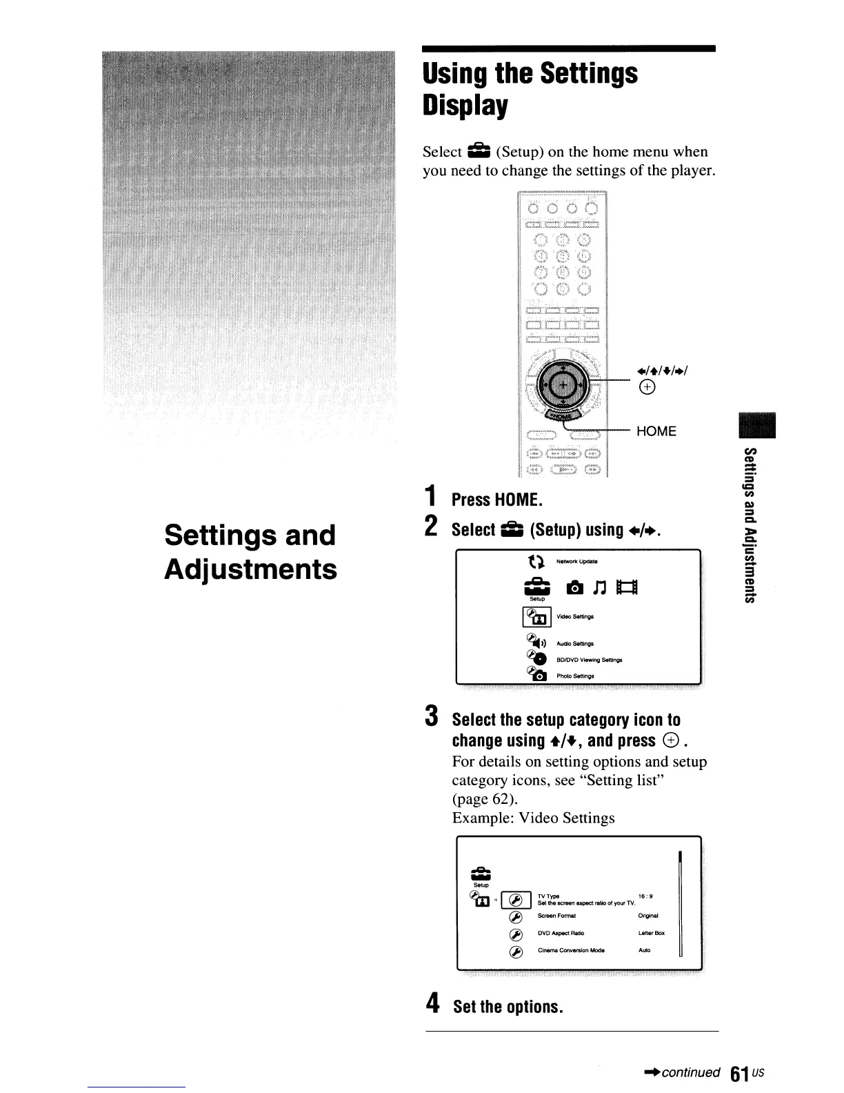 For details on setting options and setup