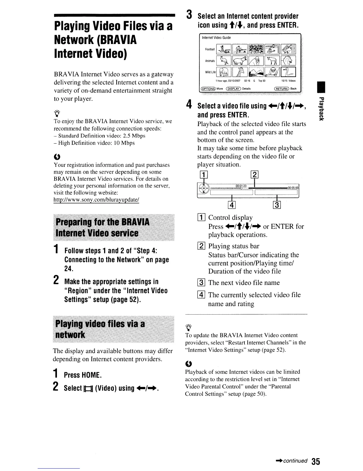 BRAVIA Internet Video services. For details on