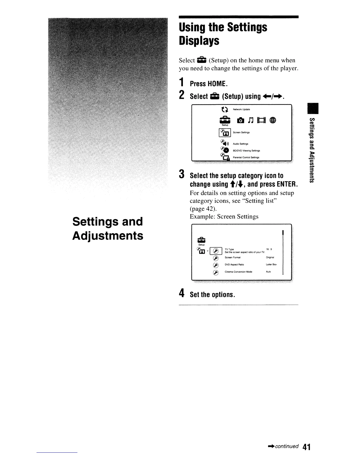 Sony BDP-N460 - Settings and Adjustments; Using the Settings Displays