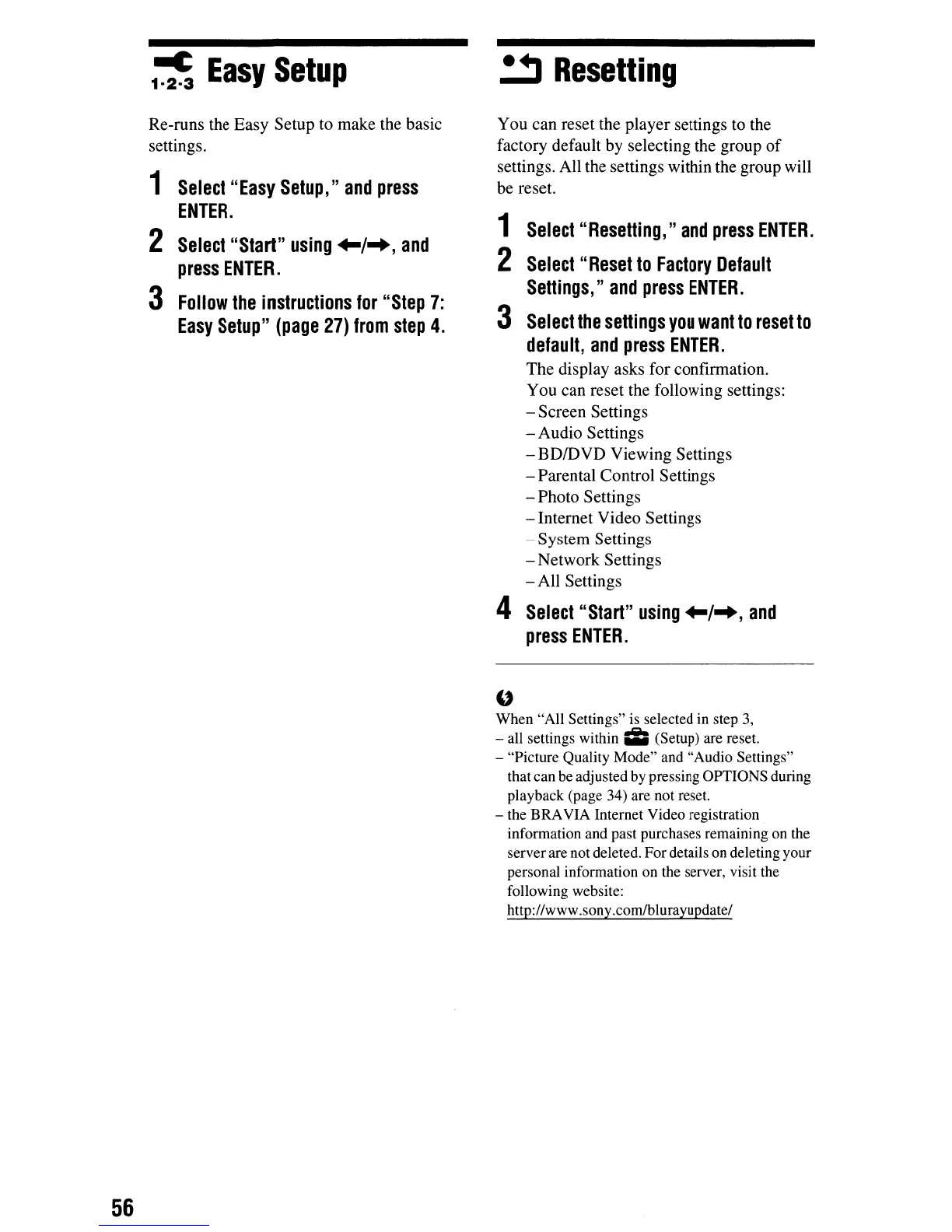 playback (page 34) are not reset.