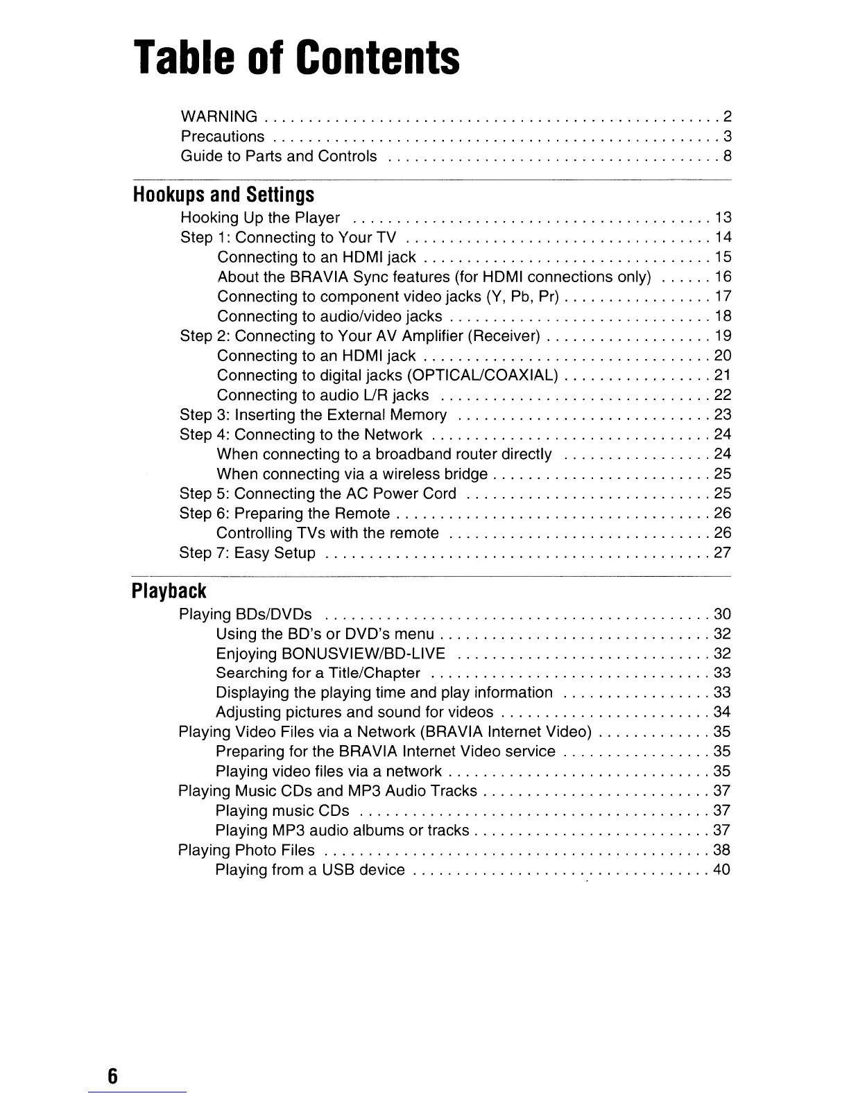 About the BRAVIA Sync features (for HDMI connections only) 16