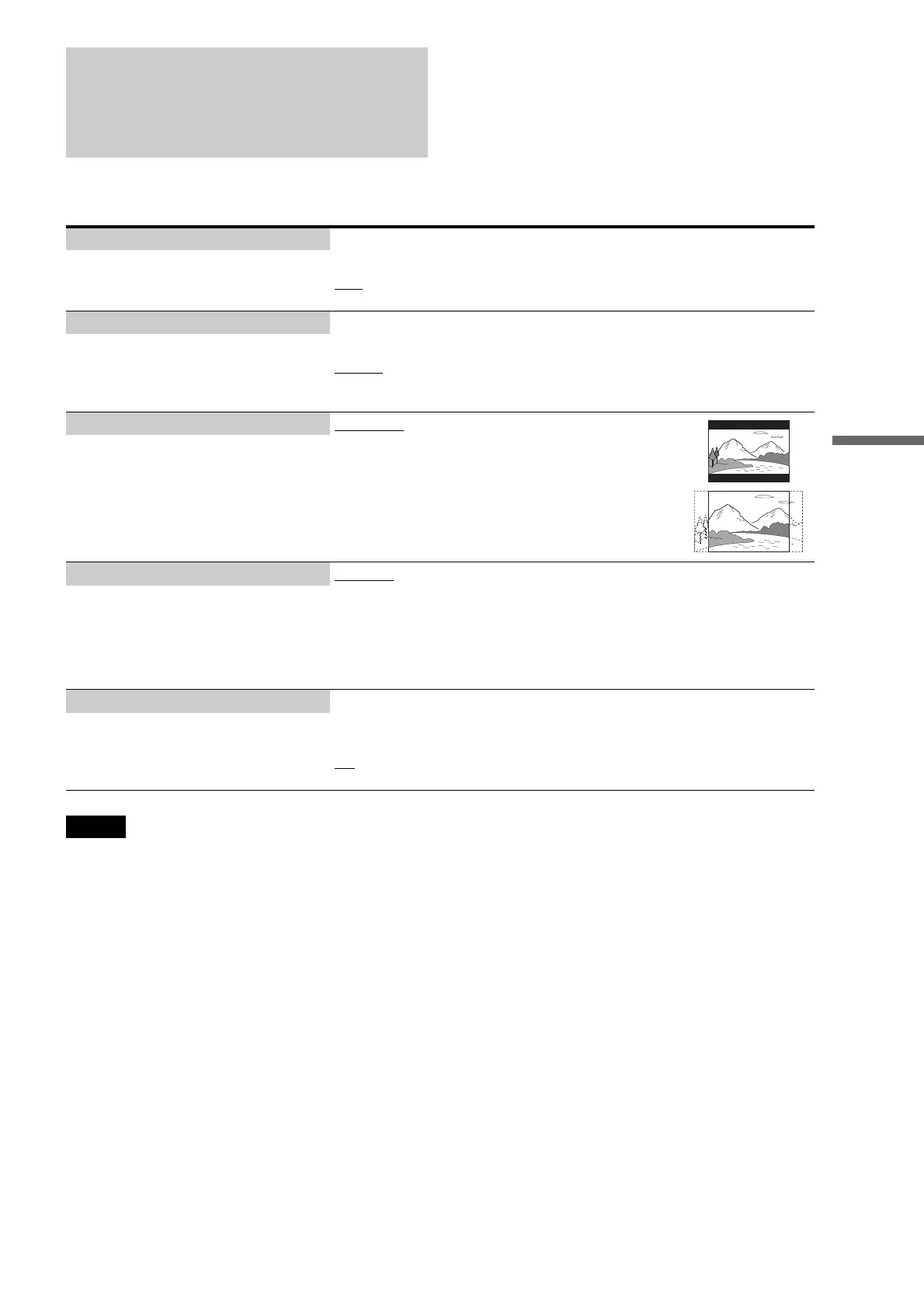 – Displays a 4:3 screen picture in 4:3 aspect ratio with black bands on the sides. Select