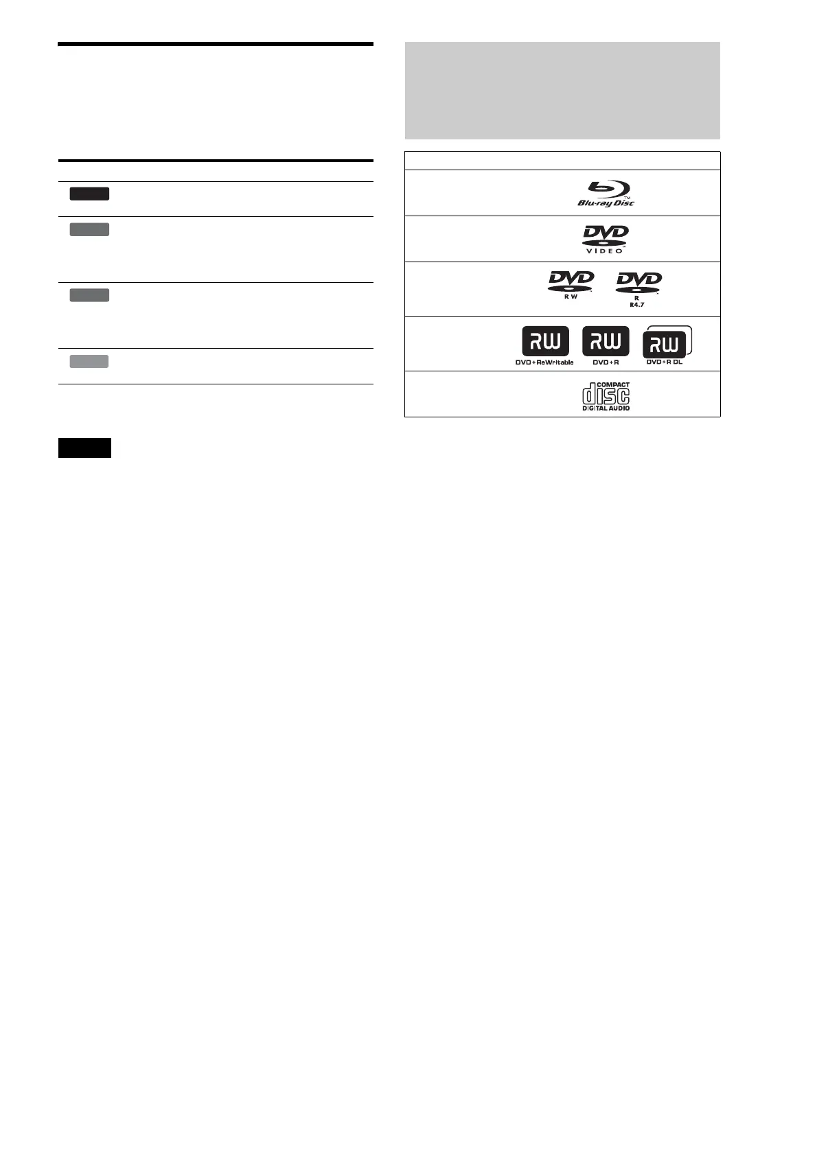 DVD” in this manual when the discs contain playable files. The