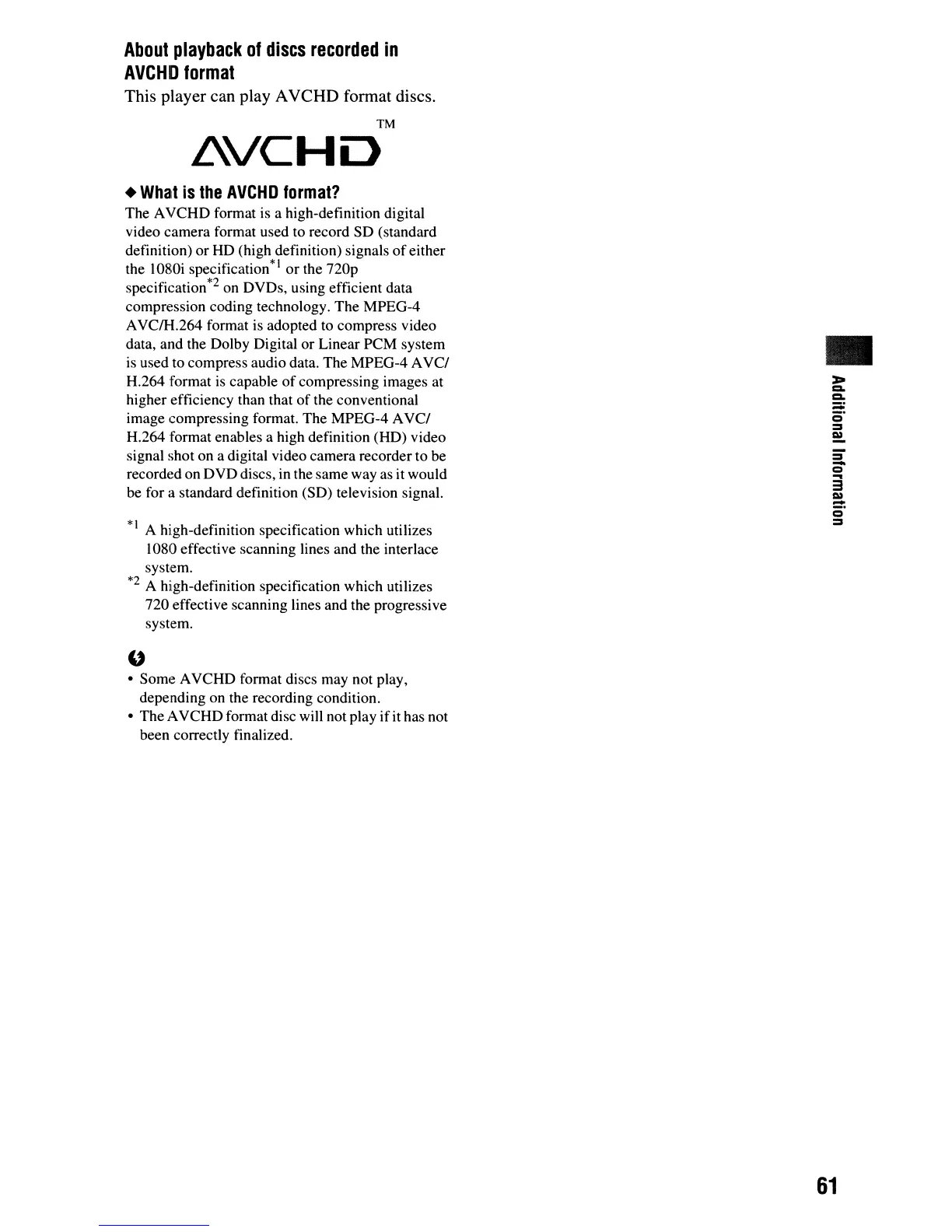 • Some AVCHD format discs may not play,