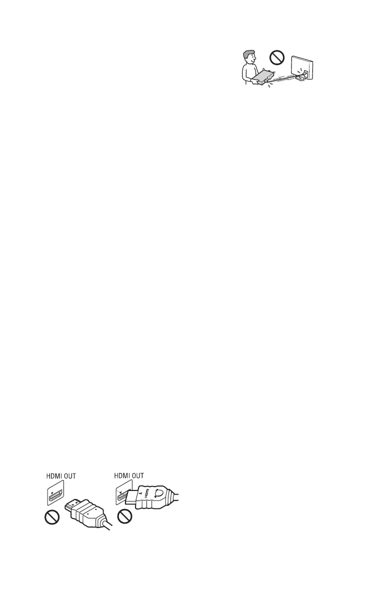 damage the HDMI OUT jack and the connector.