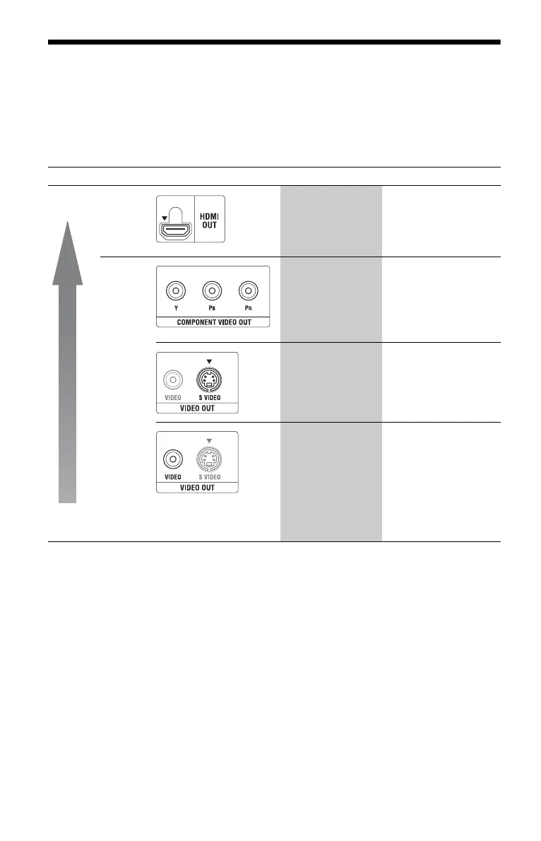 The player has the following video jacks. Connect the player to your TV according to the input