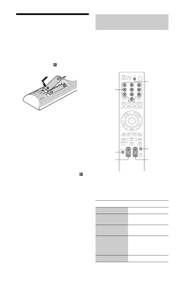 remote. Insert two Size AA (R6) batteries by