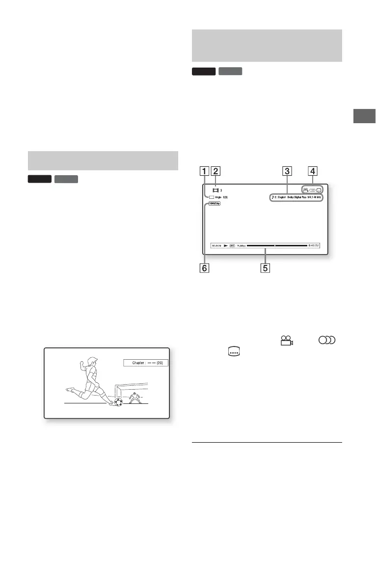 Displays Disc type/Play mode/Video