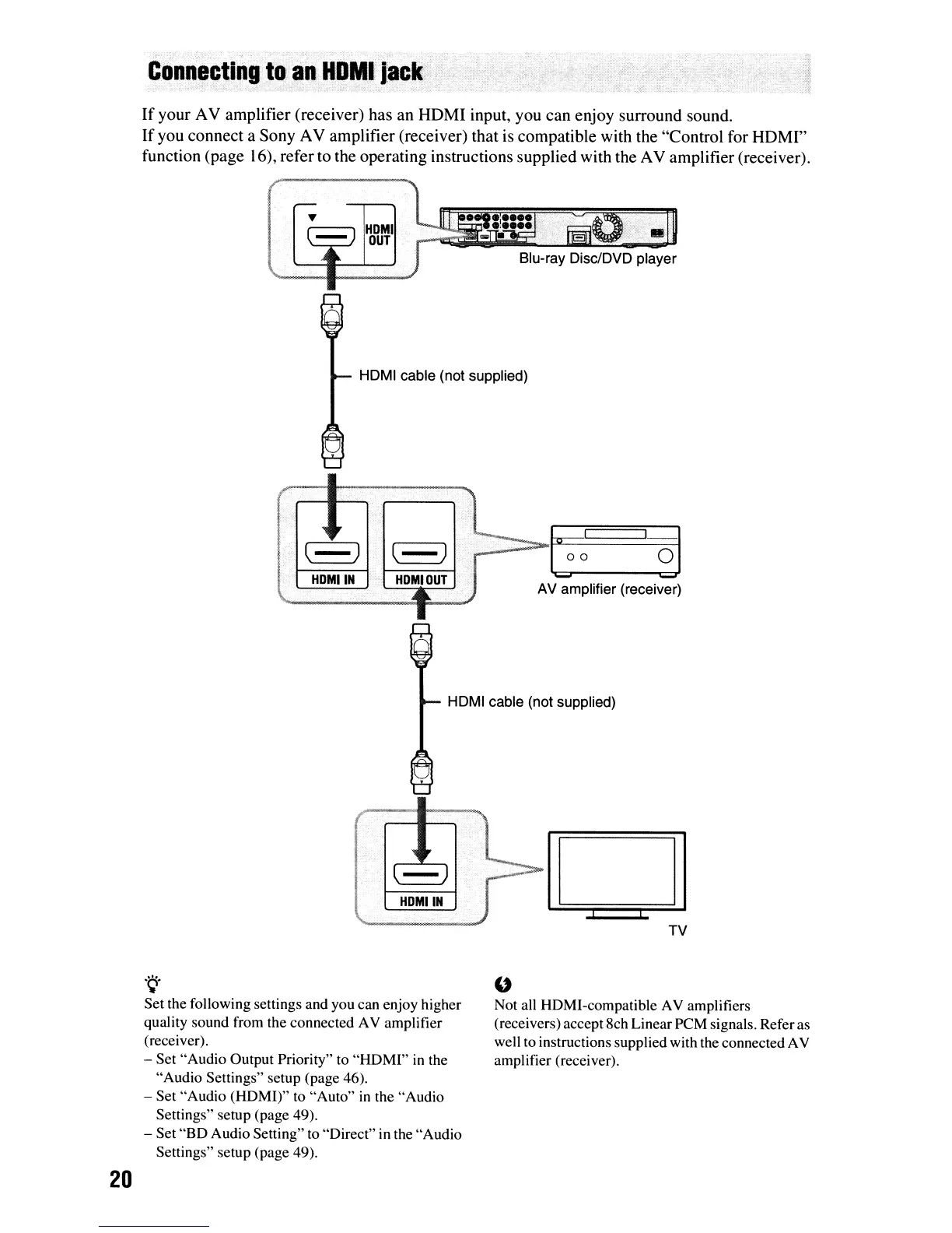 you connect a Sony AV amplifier (receiver) that is compatible with the "Control for HDMI"