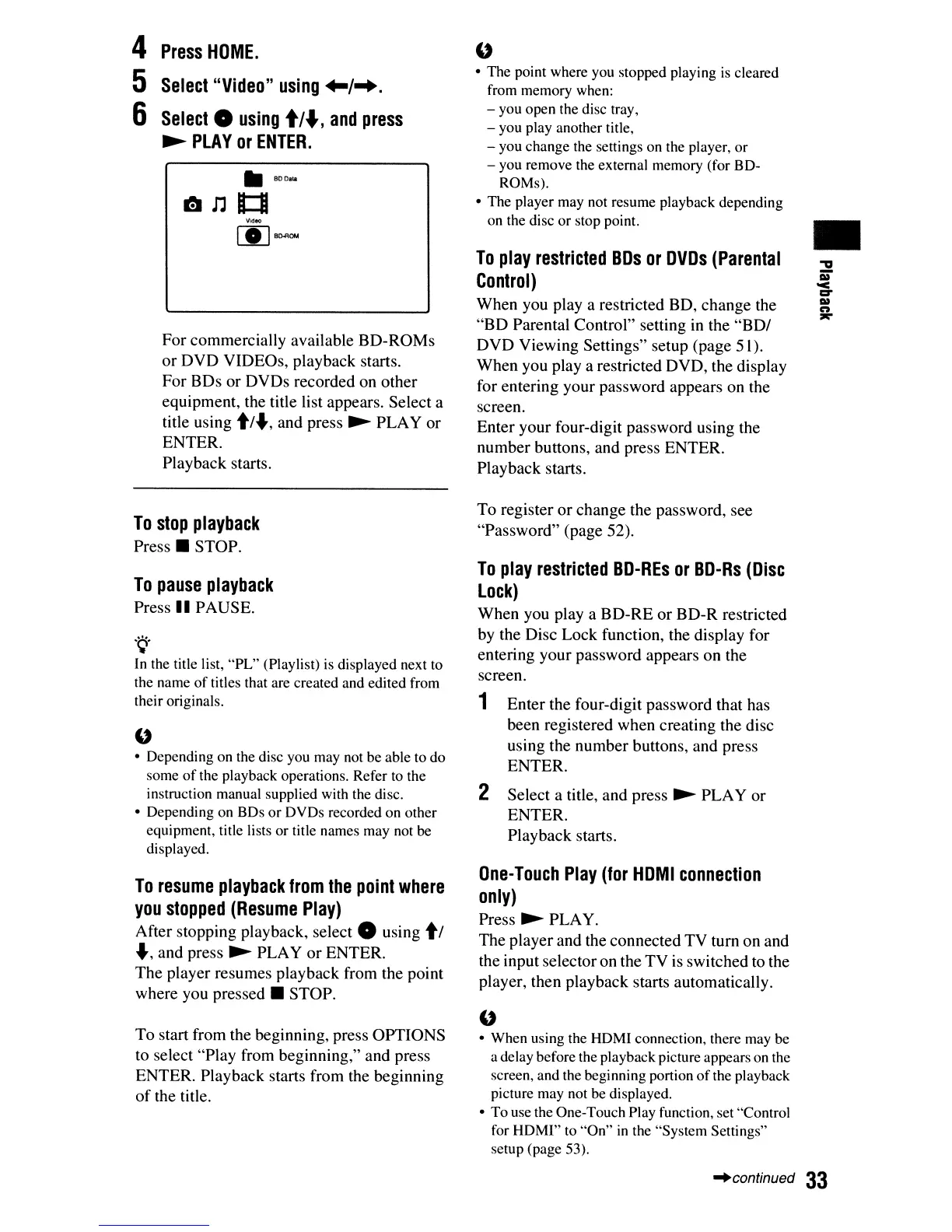 the playback operations. Refer to the