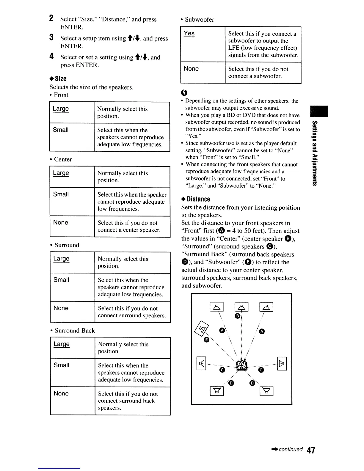"Large," and "Subwoofer"
