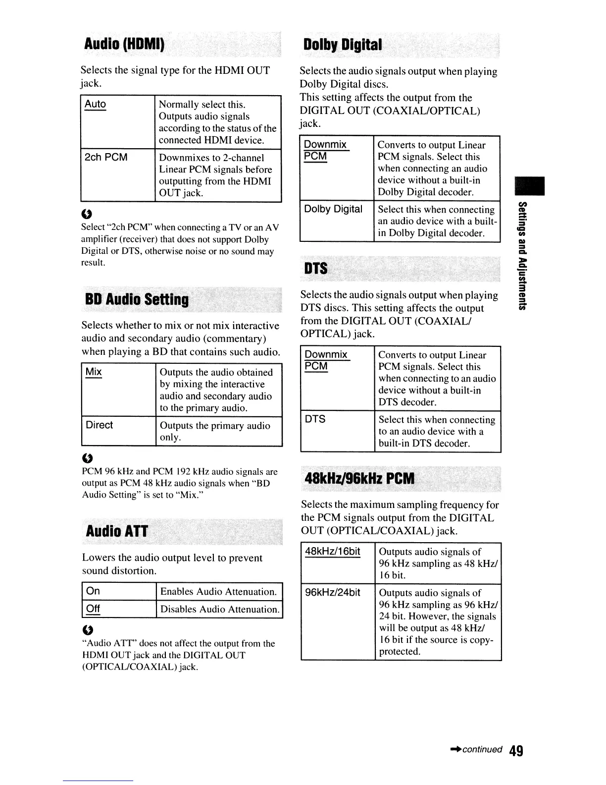 kHz audio signals when "BD