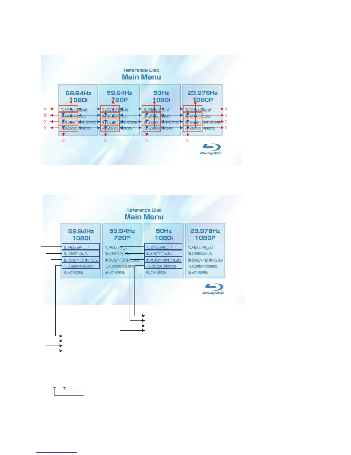 1) When the disc is inserted, 1. Video Signal of 59.94Hz/1080i of the Main Menu is selectively displayed.