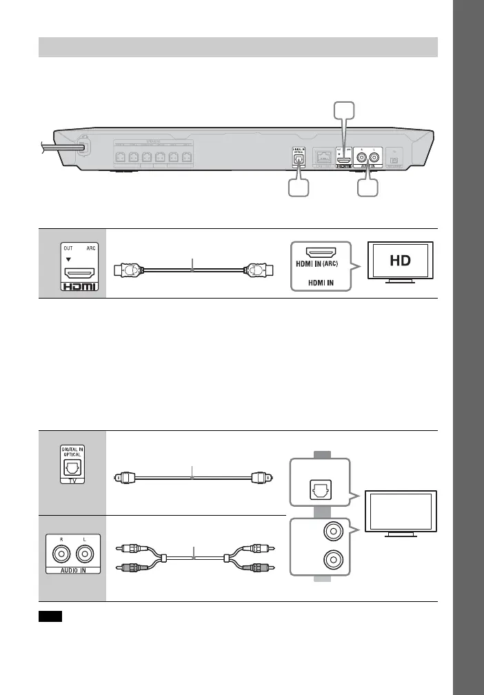 audio connection (B or C) for listening to TV sound via the system’s speakers.