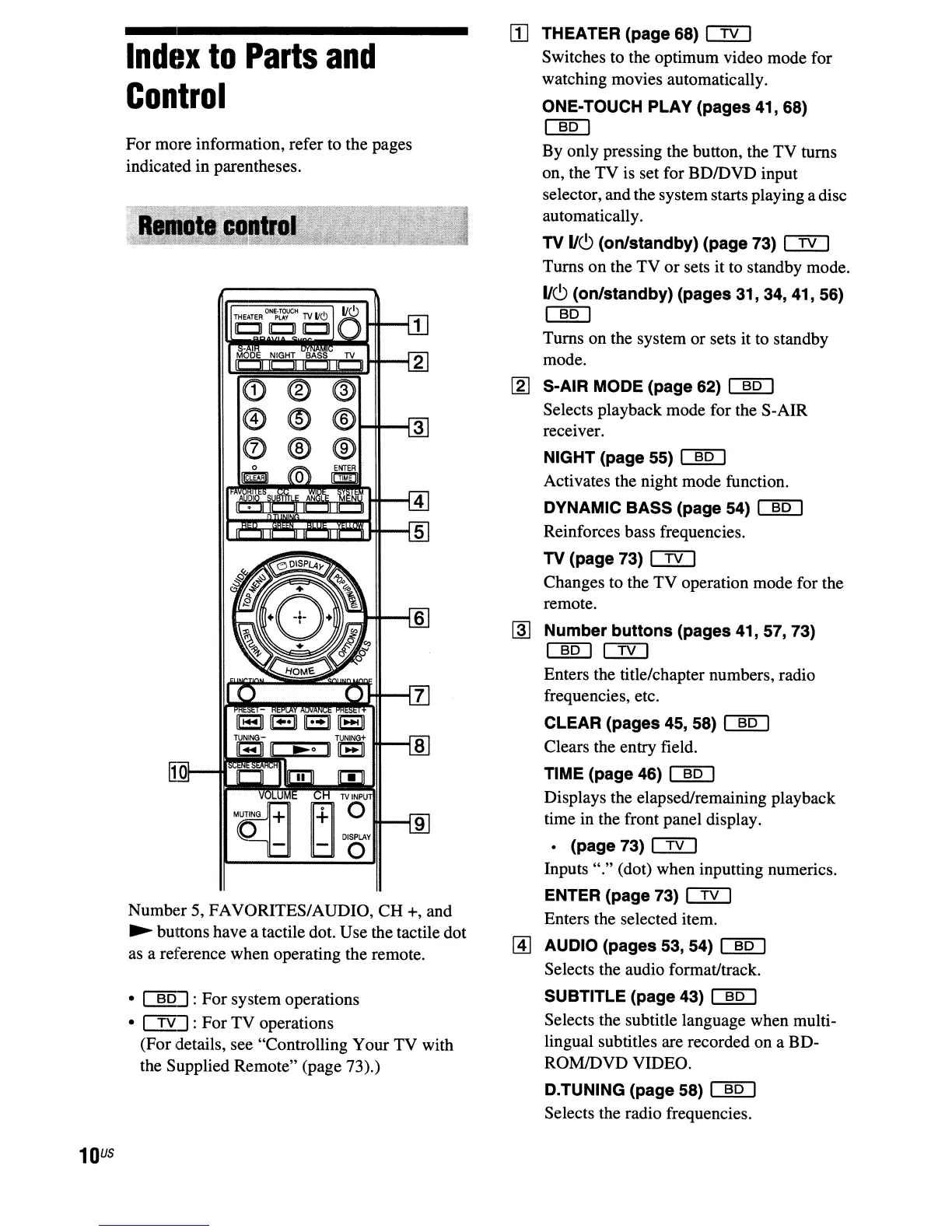 the Supplied Remote" (page 73).)
