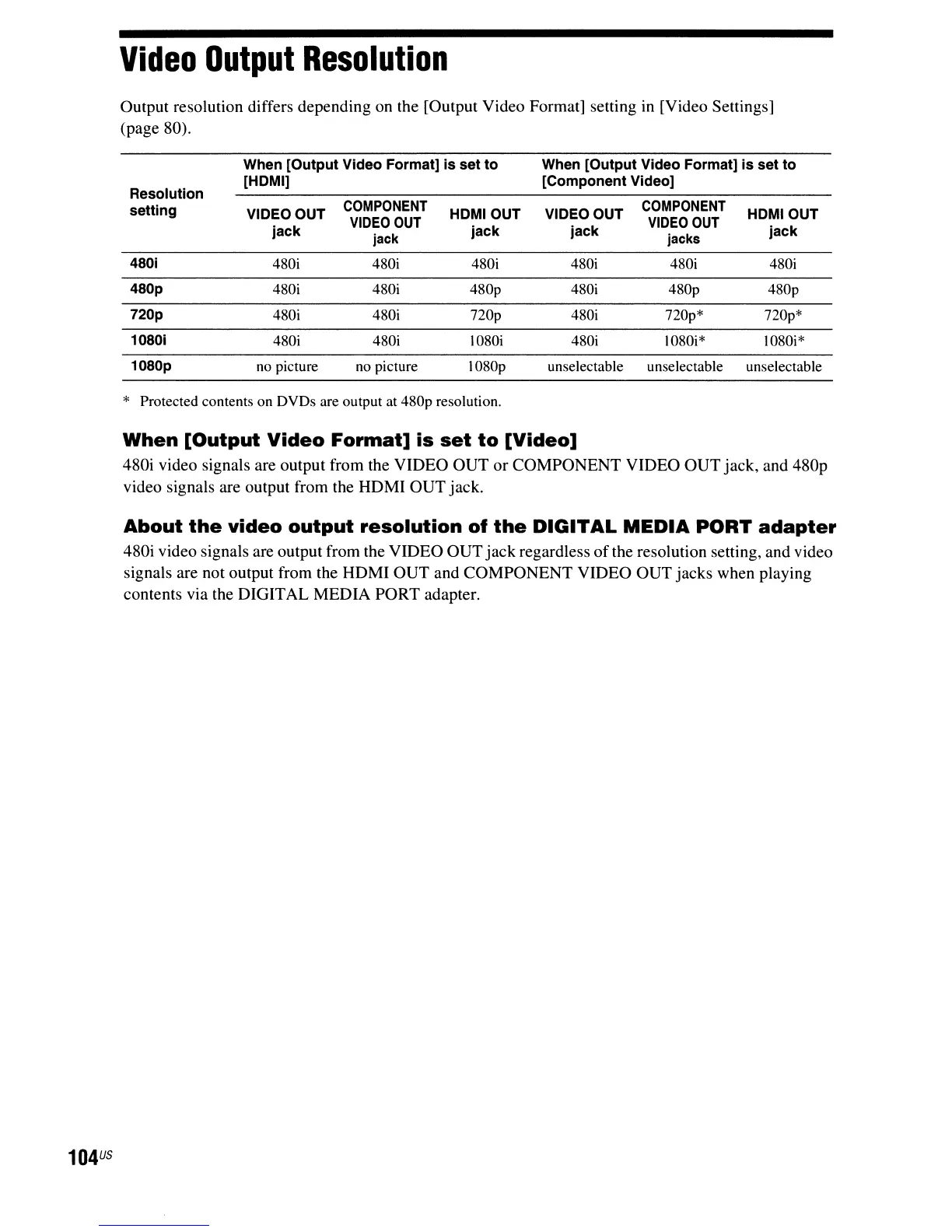 * Protected contents on DVDs are output at 480p resolution.