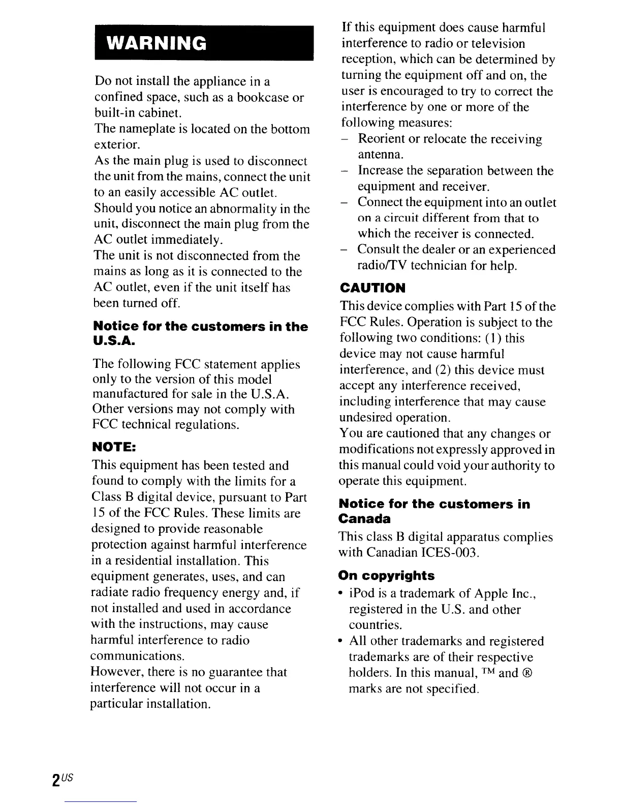 interference, and (2) this device must
