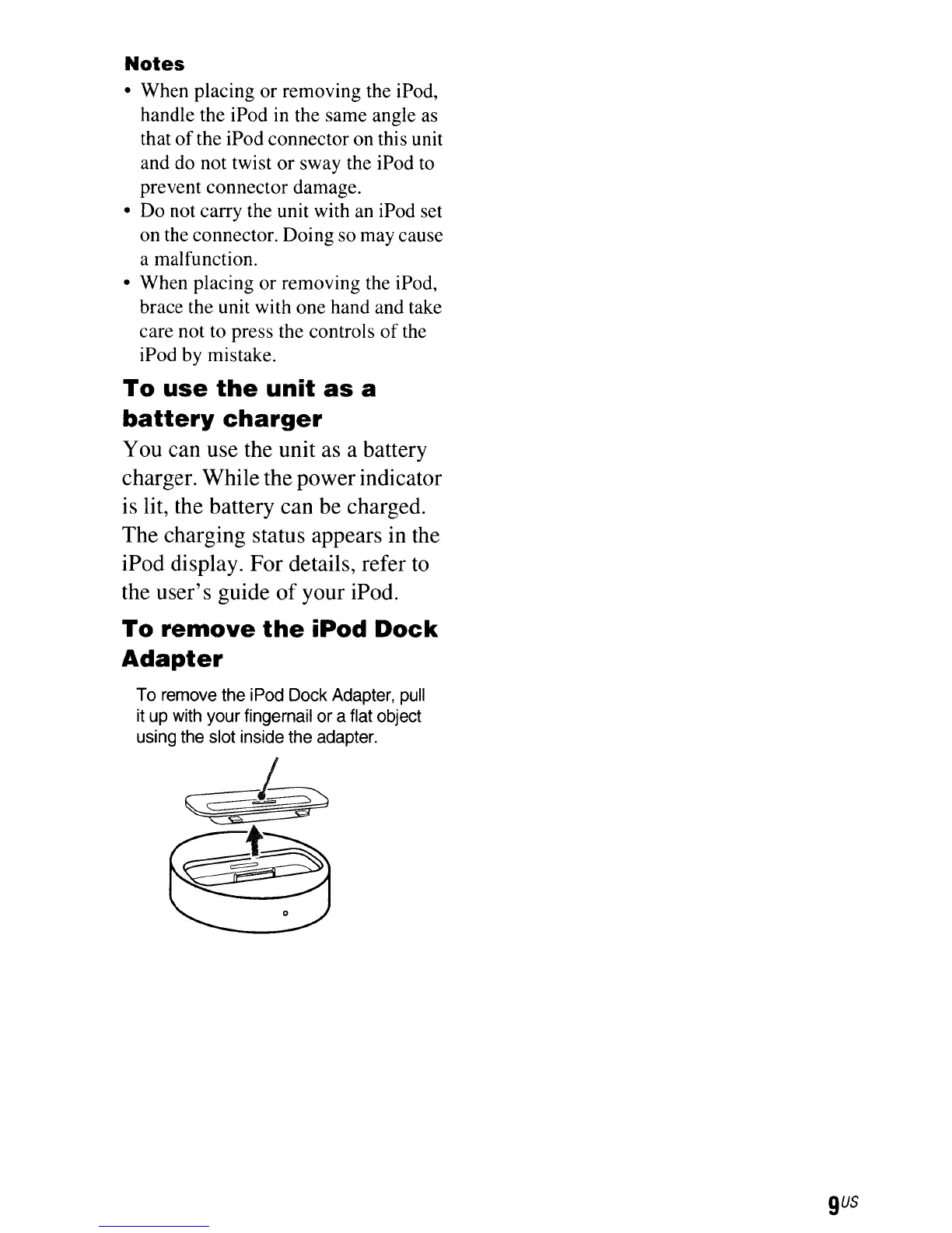 • When placing or removing the iPod,