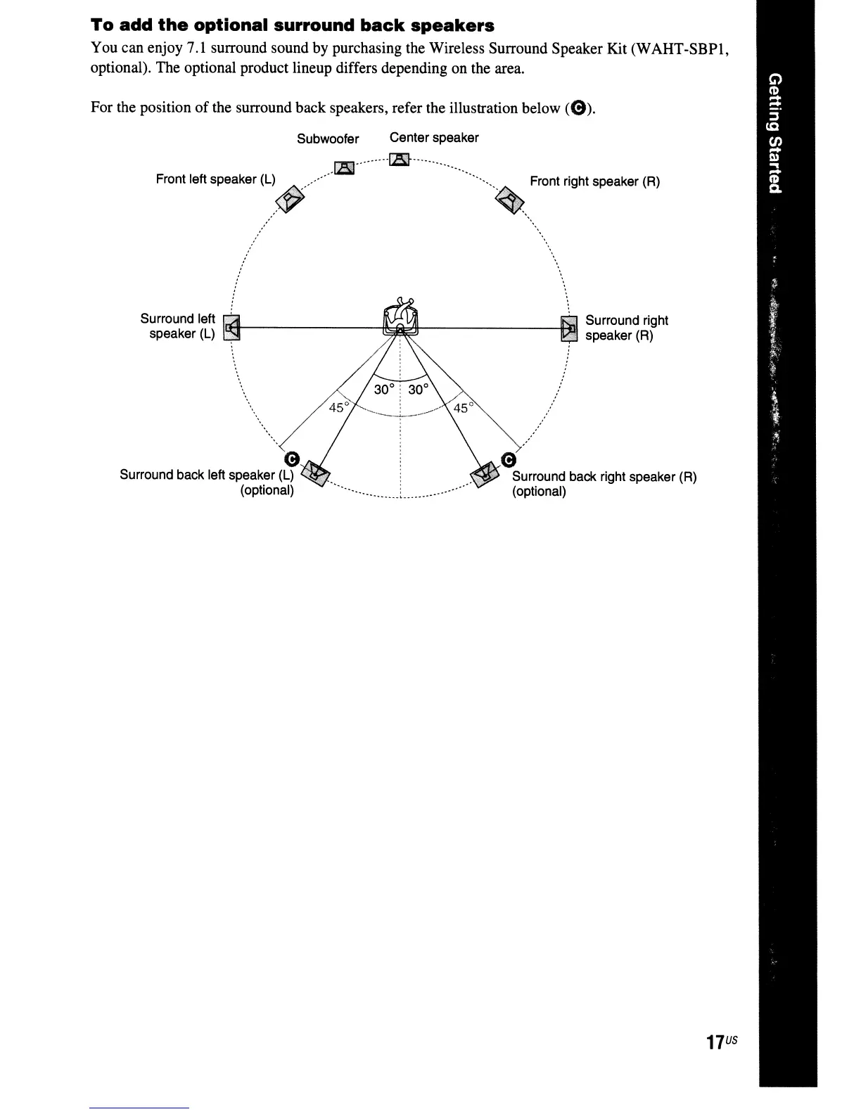 the surround back speakers, refer the illustration below