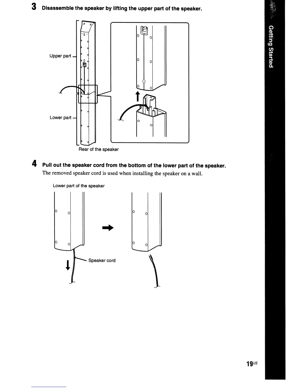 4 Pull out the speaker cord from the bottom of the lower part of the speaker.