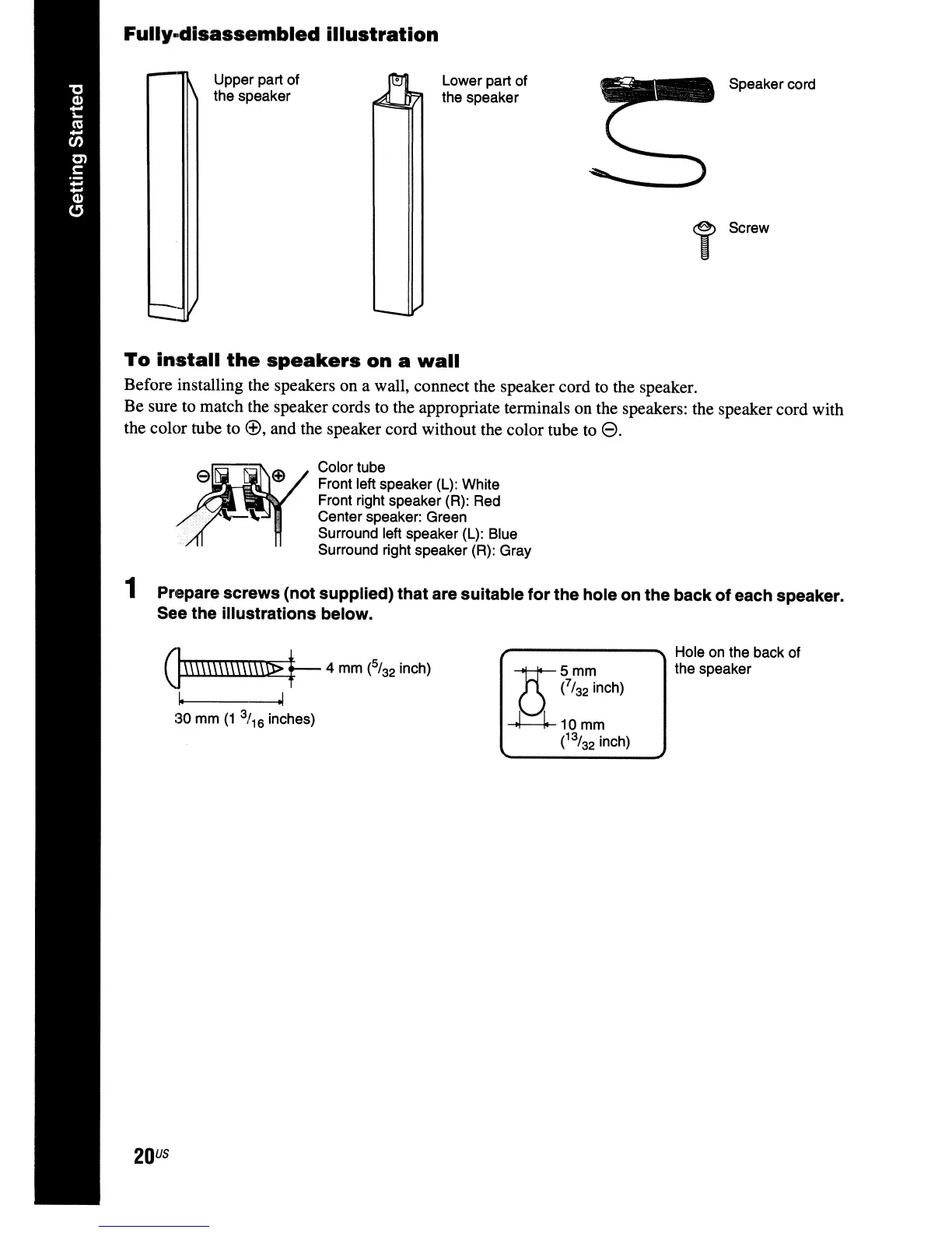 1 Prepare screws (not supplied) that are suitable for the hole on the back of each speaker.