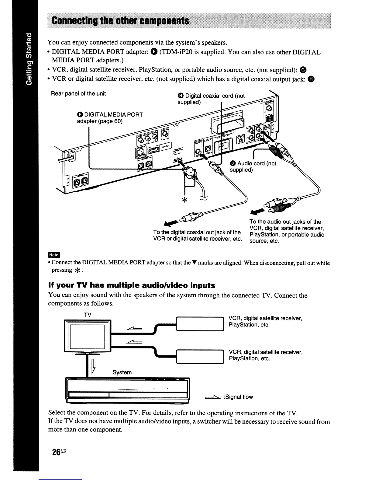• VCR, digital satellite receiver, PlayStation, or portable audio source, etc. (not supplied):