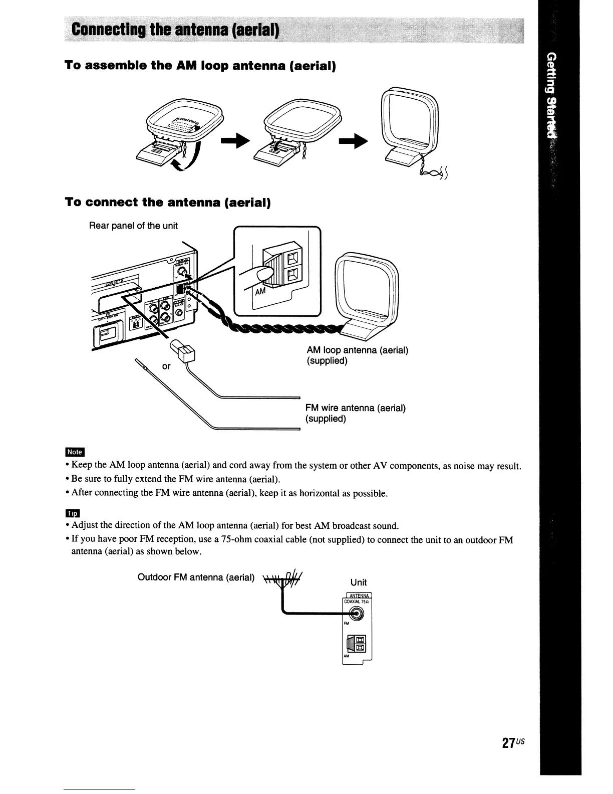 • Keep the AM loop antenna (aerial) and cord away from the system