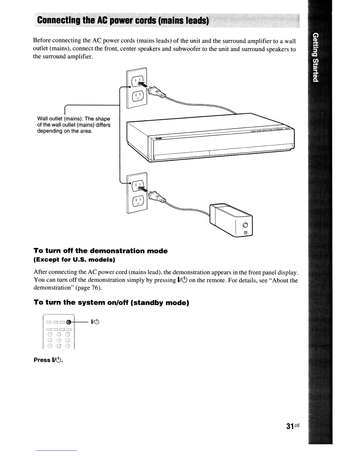 Afterconnecting the AC powercord (mains lead), the demonstration appears in the front panel display.