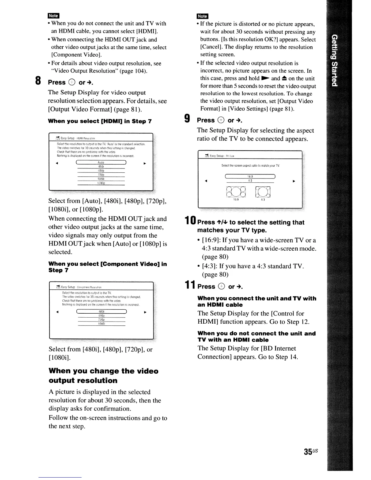 • For details about video output resolution, see