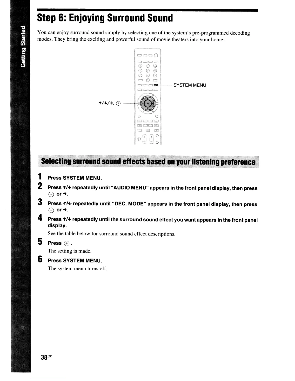 repeatedly until "DEC. MODE" appears in the front panel display, then press