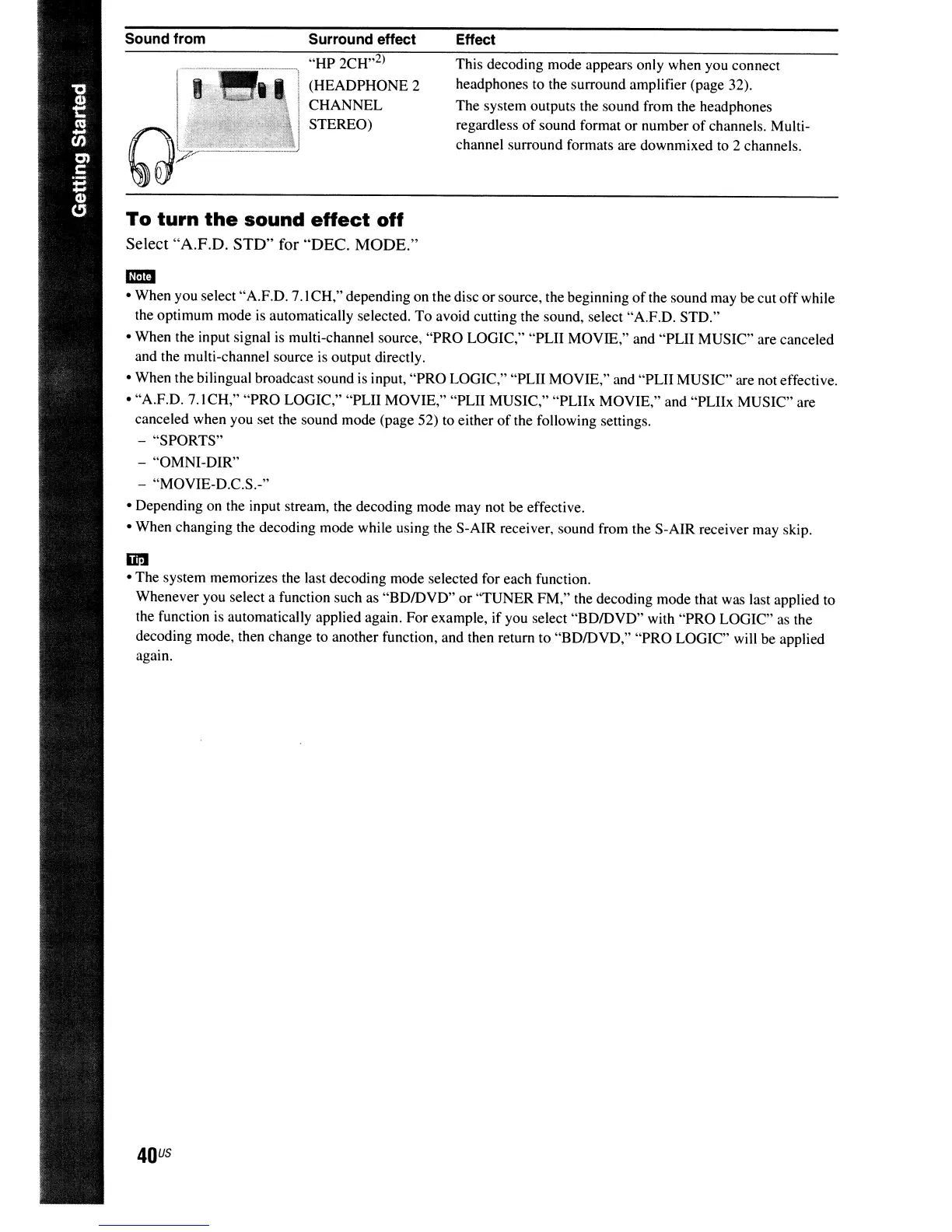 • When changing the decoding mode while using the S-AIR receiver, sound from the S-AIR receiver may skip.