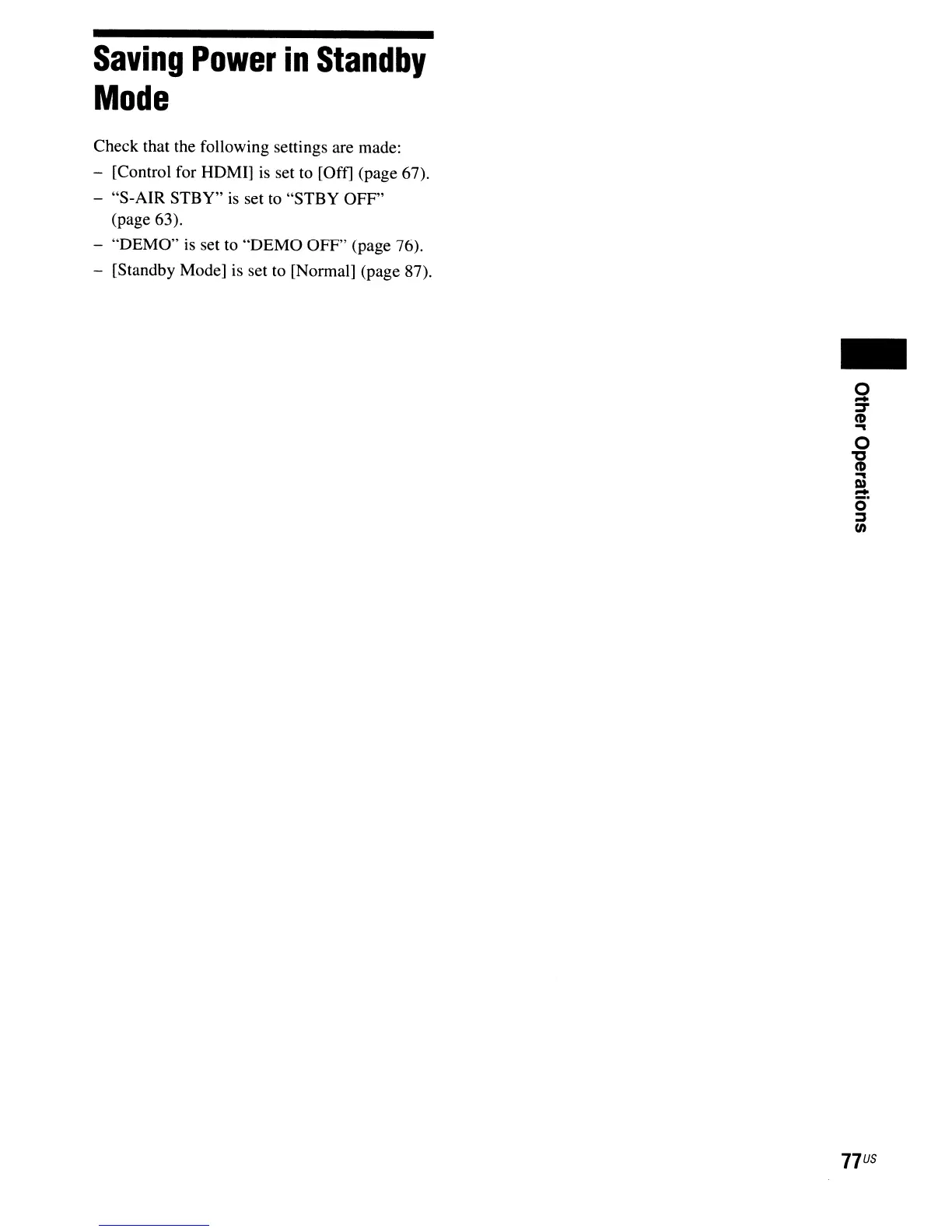 - [Standby Mode] is set to [Normal] (page 87).