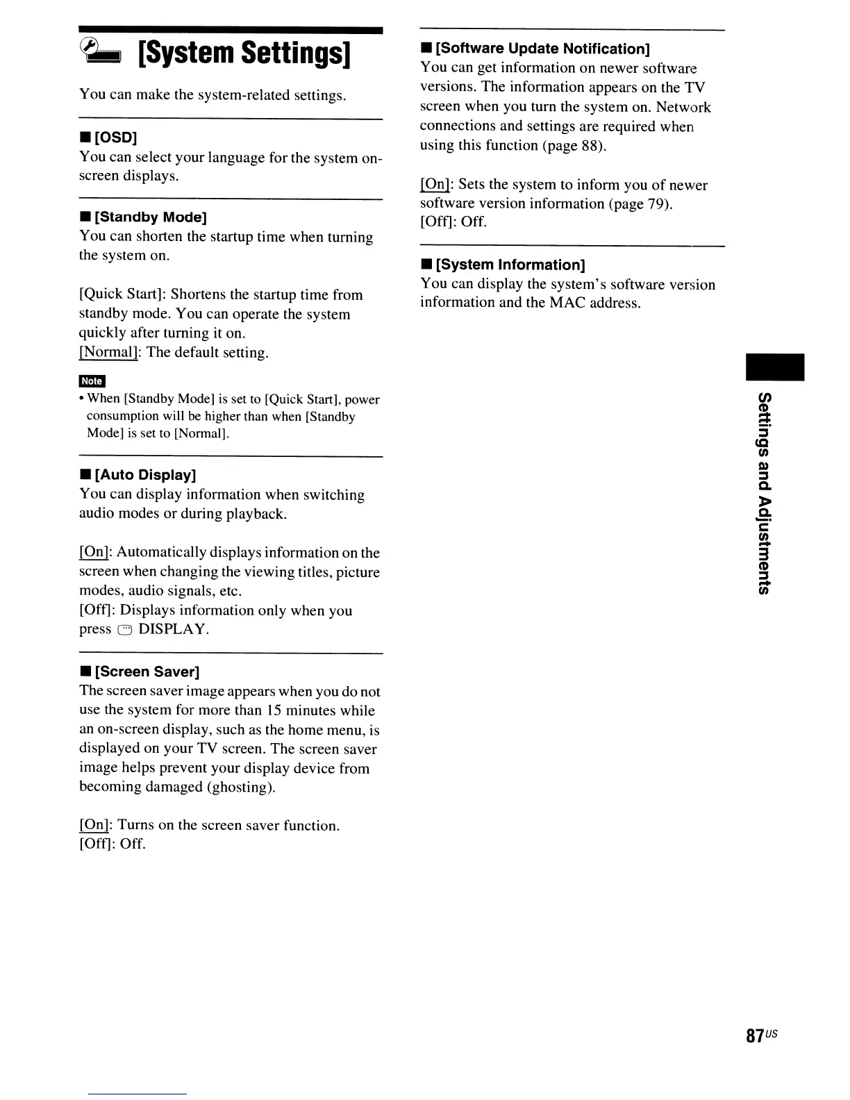 screen when you turn the system on. Network