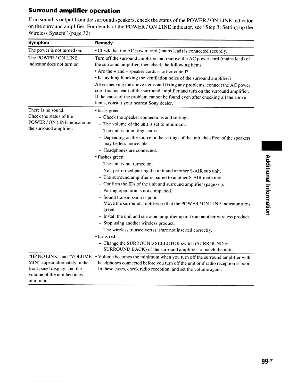 Move the surround amplifier so that the POWER/ ON LINE indicator turns
