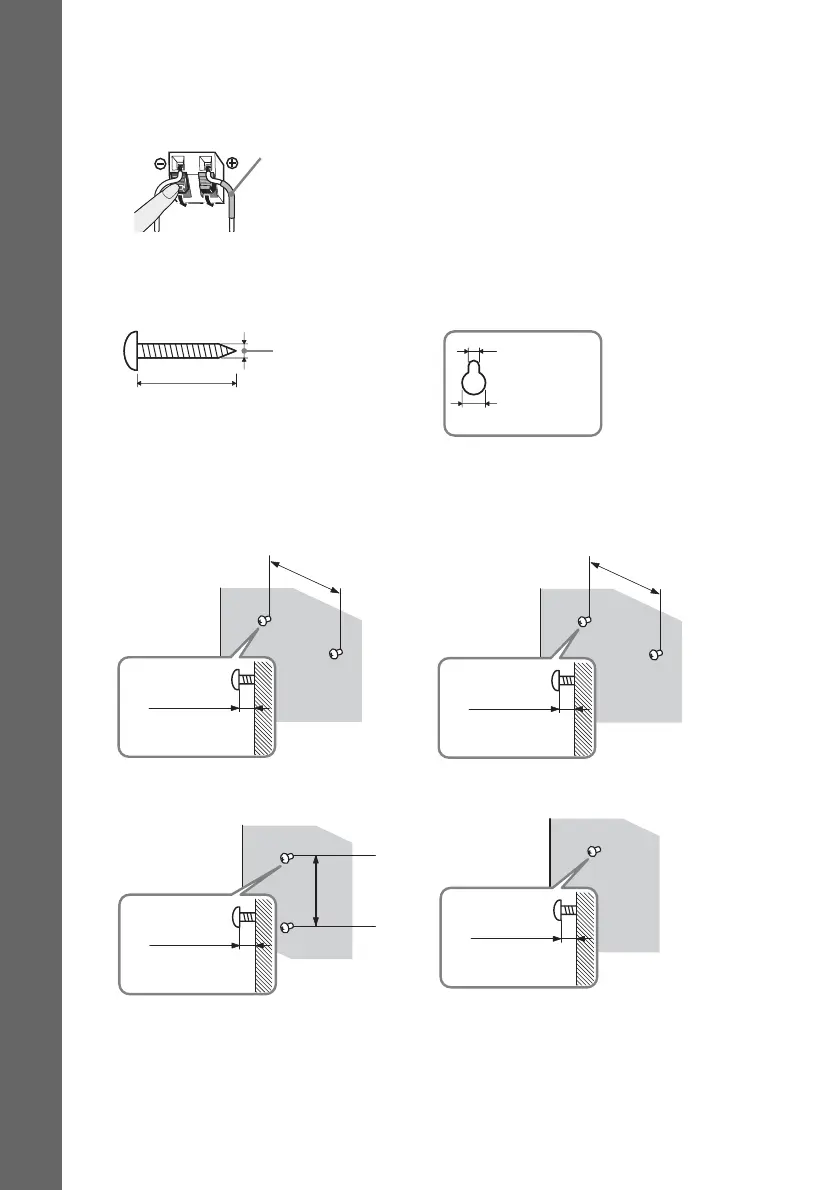 1 Prepare screws (not supplied) that are suitable for the hole on the back of each speaker.