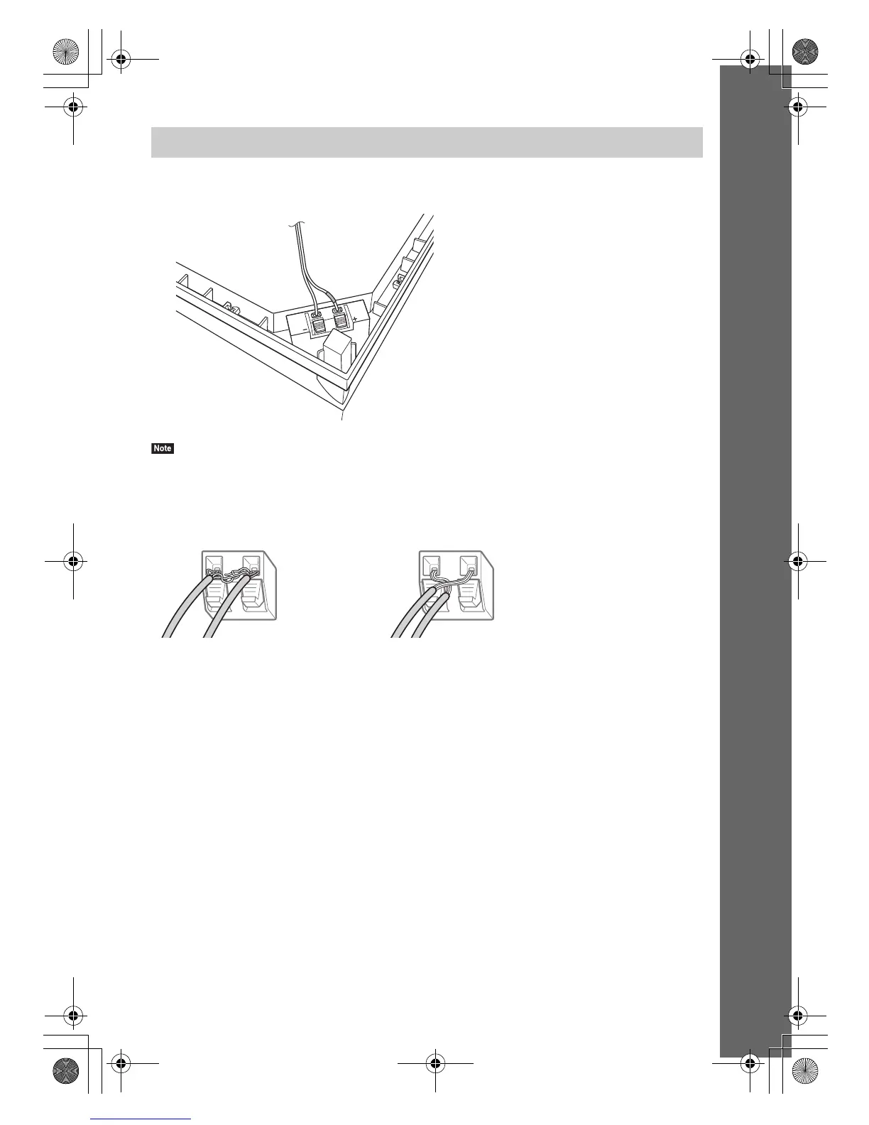 • To avoid short-circuiting the speakers, make sure that the speaker cord connection is not like the following