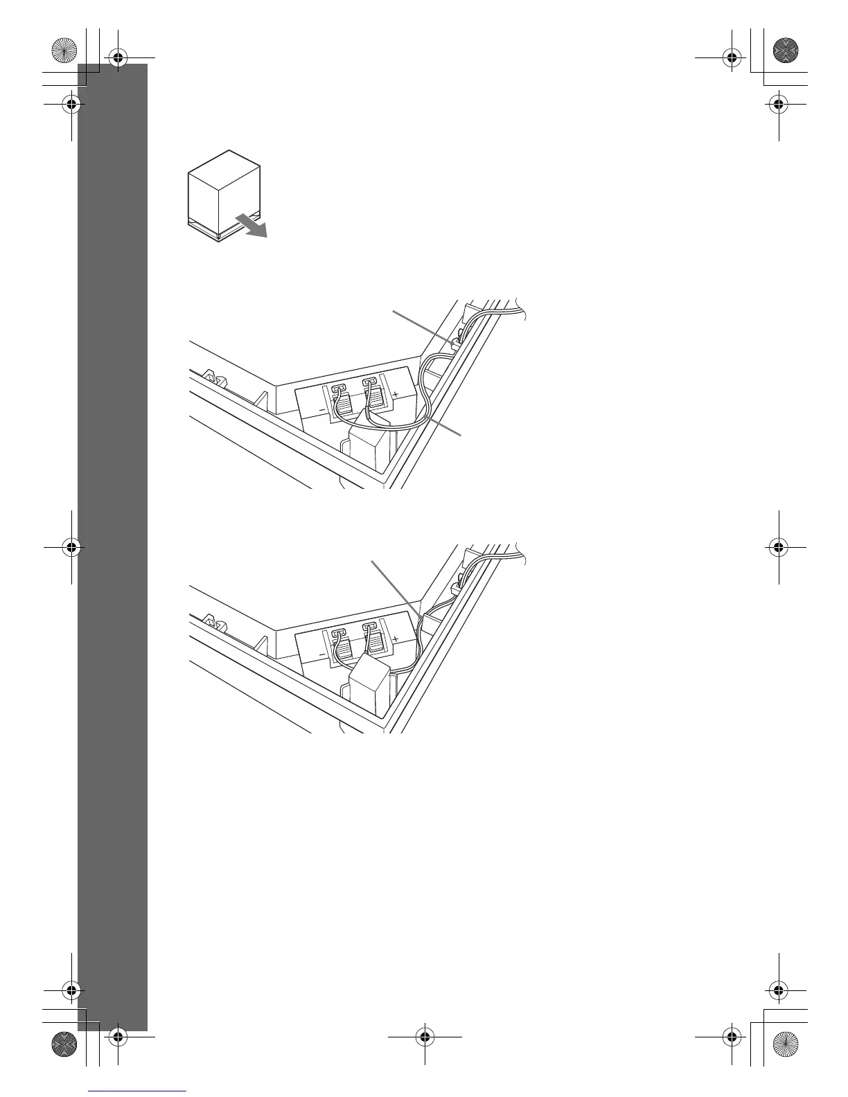 1 Secure the speaker cord in the speaker cord holder to the right of the speaker terminal.