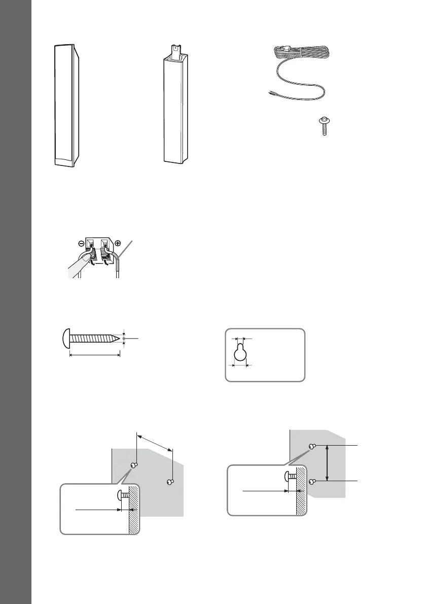 1 Prepare screws (not supplied) that are suitable for the hole on the back of each speaker.