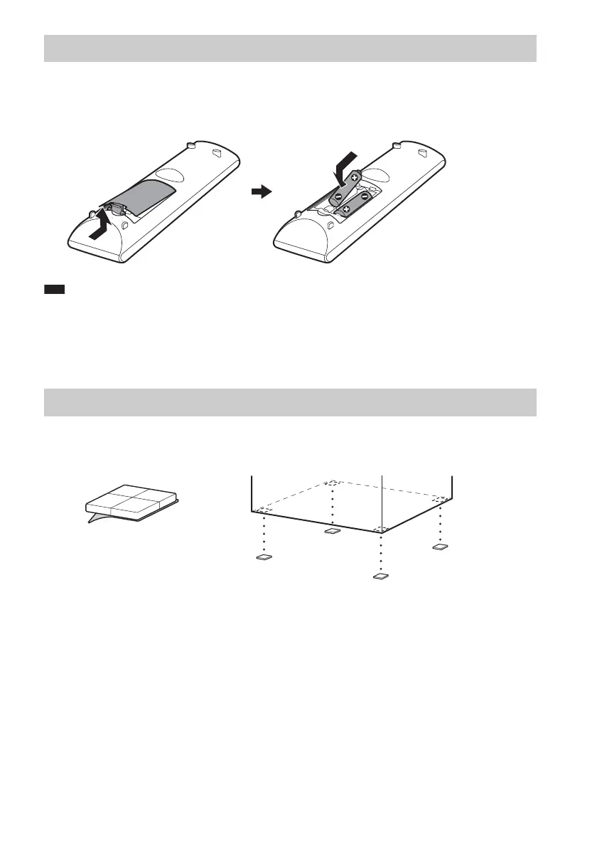 Attach the foot pads (supplied) to the bottom of the subwoofer to stabilize the subwoofer and prevent