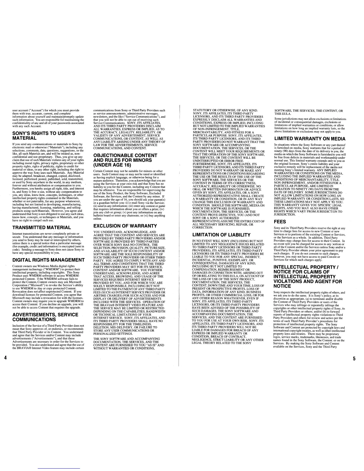 SONY'S RIGHTS TO USER'S