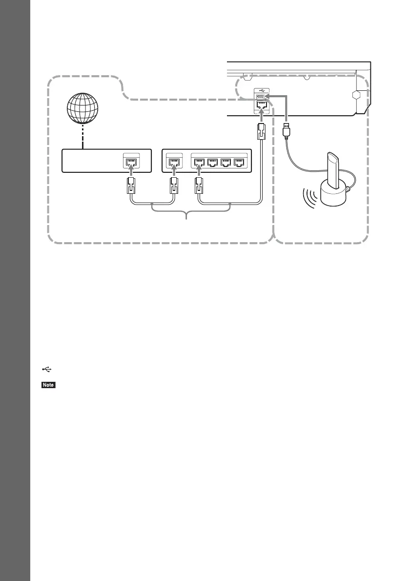 Use a wireless LAN via the USB Wireless LAN Adapter (Sony UWA-BR100* only).