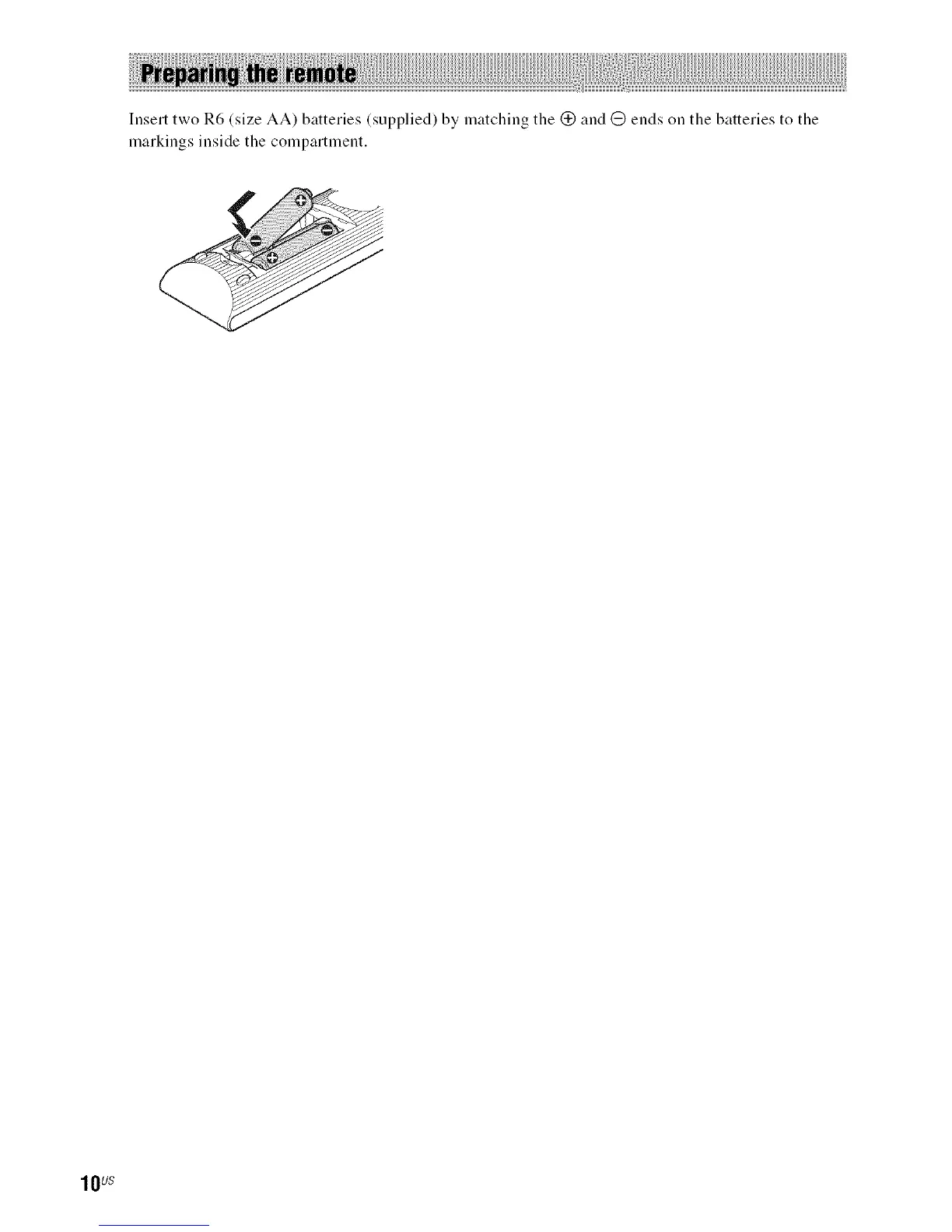 Iusert two R6 (size AA) batteries (supplied) by matchiug the @ aud @ euds ou the batteries to the